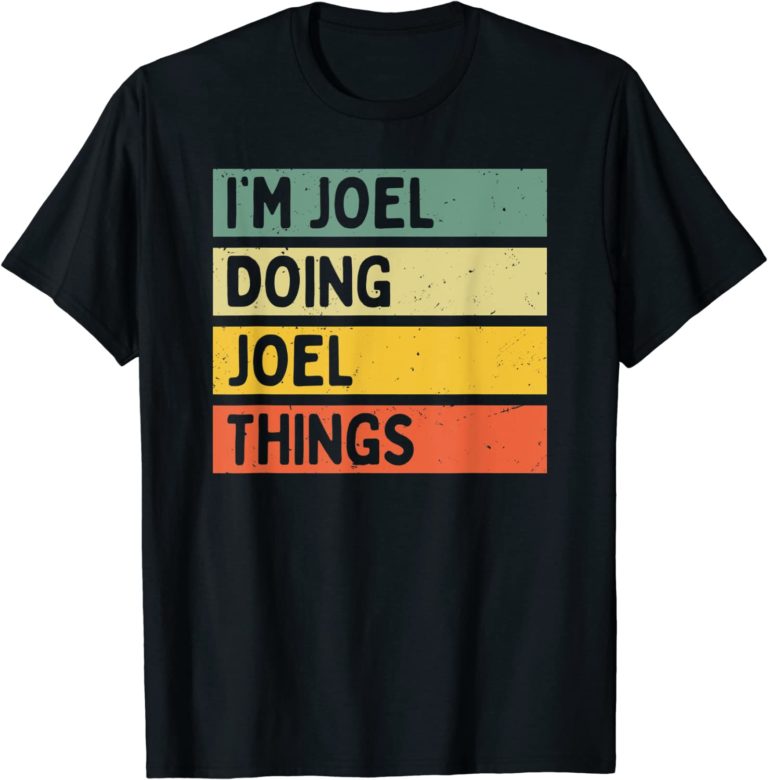 Sarcastic saying in retro and vintage distressed text colors, funny personalized gift idea for a dad, brother, friend or father with humor, sarcasm and first name Joel.